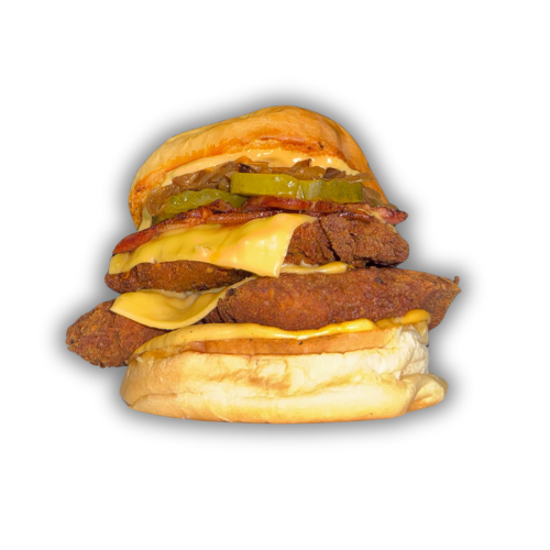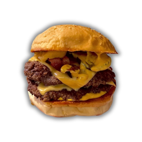 Pan Brioche, blend de solomo, queso cheddar, tocineta, cebolla caramelizada y salsa de la casa 2